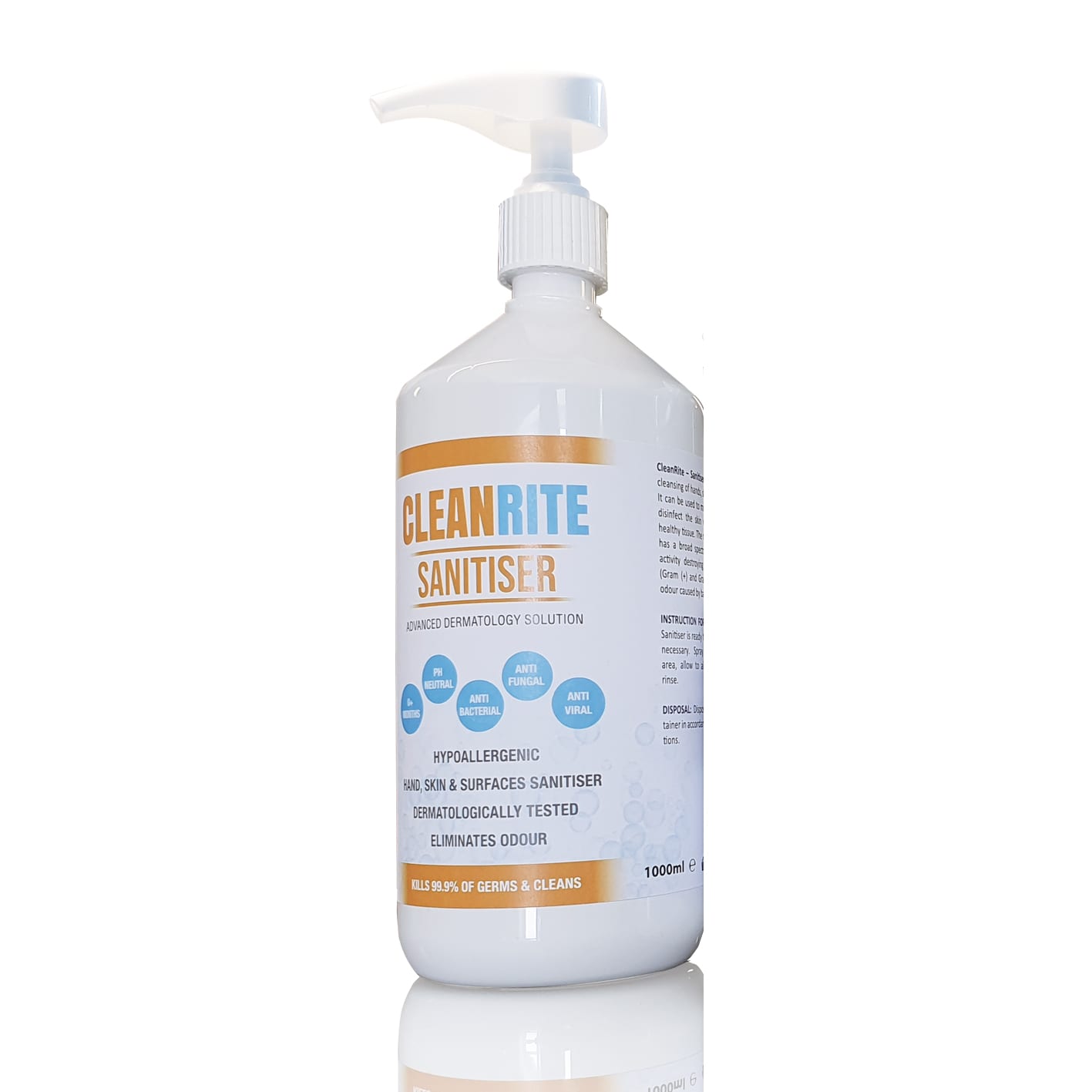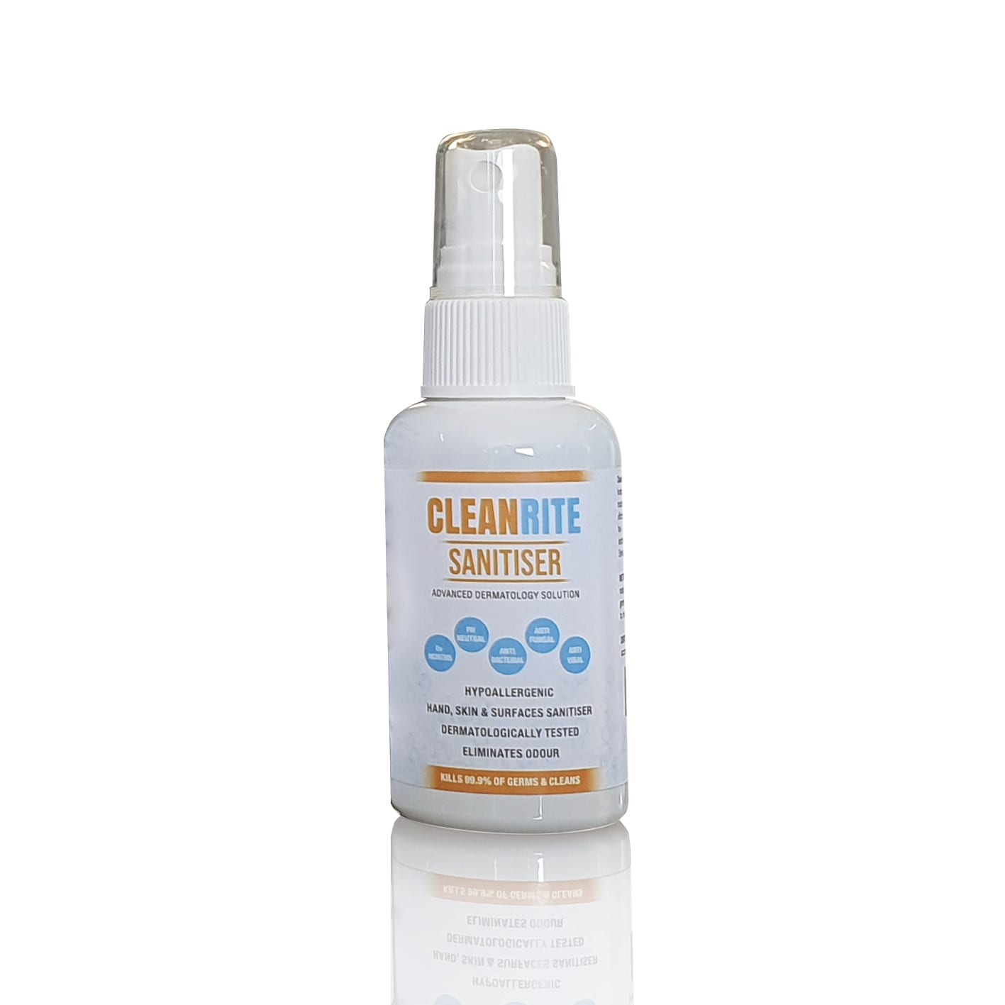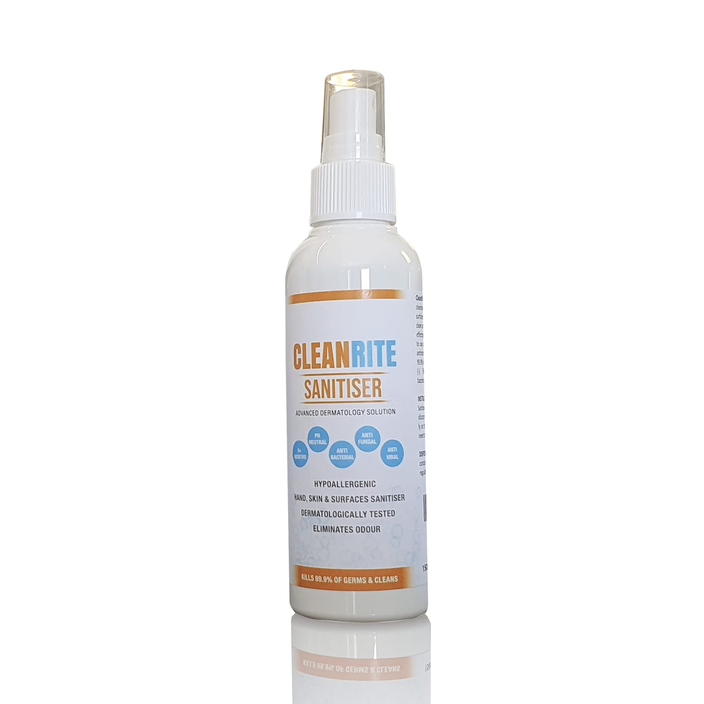 CleanRite is Alcohol – Free Hypoallergenic hand, skin and surface sanitiser. It is dermatologically tested, antibacterial, antifungal & antiviral.